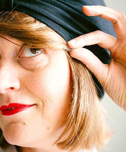 Confrontée à la perte de ses cheveux, elle décide de les couper et de créer elle-même une solution pour continuer à se reconnaître. C’est ainsi qu’est née sa première prothèse capillaire.