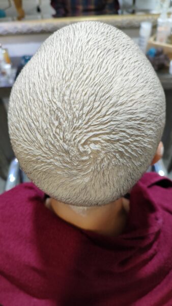Pendant les traitements de chimiothérapie, le cuir chevelu devient particulièrement sensible, souvent sec et fragilisé. C’est pourquoi je commence les soins dès le début du protocole, pour nourrir, apaiser et préserver votre peau. Grâce à l’argile blanche, aux plantes et à des soins comme le Vishnu Priya, je vous accompagne dans la détoxification du cuir chevelu, la régulation de la porosité du cheveu, et la préparation à une repousse saine et harmonieuse. Chaque étape est importante pour retrouver confort, confiance… et bientôt, une belle chevelure.